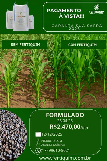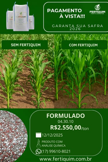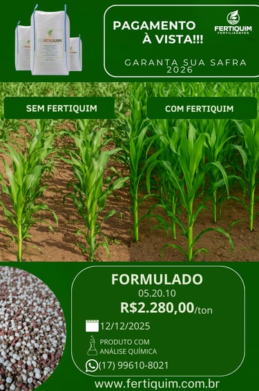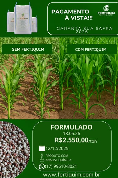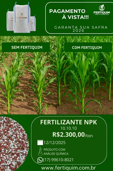"Nossos fertilizantes químicos são desenvolvidos com tecnologia de ponta para garantir alta produtividade e nutrição equilibrada para suas culturas. Com fórmulas precisas e de rápida absorção, eles fornecem os nutrientes essenciais para um crescimento saudável e colheitas mais produtivas."